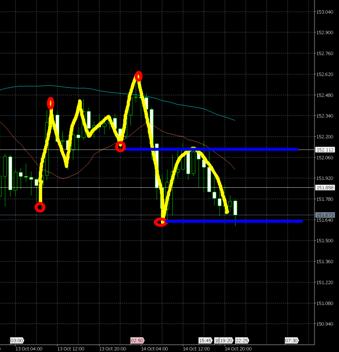 エントリー戦略: 1時間足でのレジサポ抜けでの戦略か、レジスタンスライン到達後の売りでの戦略