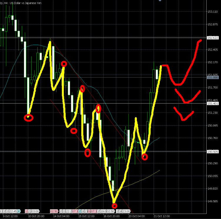 エントリー戦略: 4時間足での押し目買い戦略だすが、どこまで戻すか読めない。