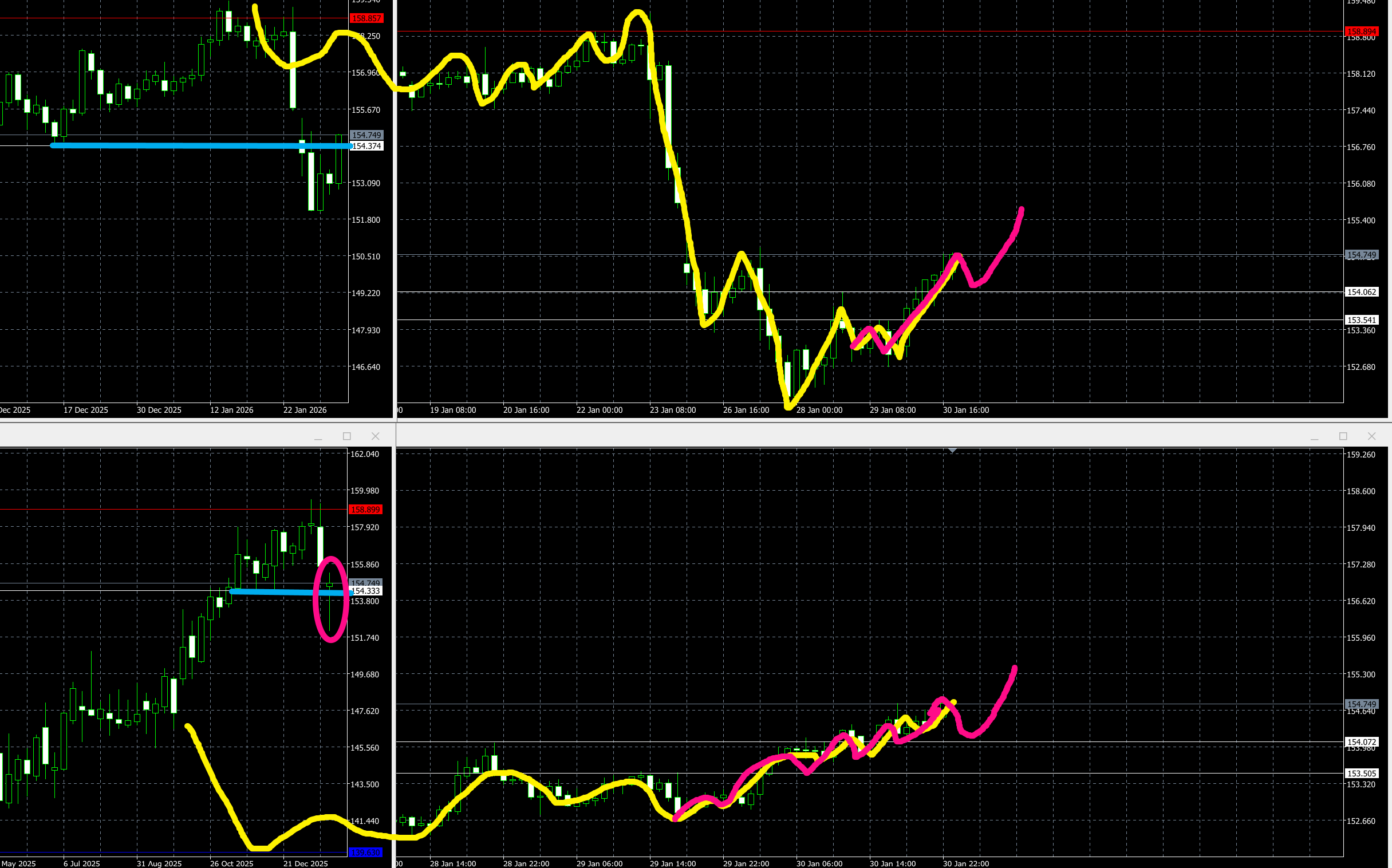 エントリー戦略: 4時間足は押し目を拾って5波狙い。